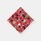 Cute Gräns Collie hundar i festliga helgdag som bär julhattar, antlers, strängar av ljus och polka punkt- och glasyrtröjor på röd bakgrund med utspridda prydnadsföremål.