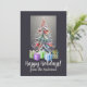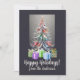 Abstrakt, glansig jultomte gräs, "Glad helg", redigerbar, julkort, digital nedladdning, skapat med hjälp av AI.