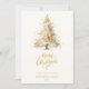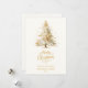 En mjuk beige bakgrund. Dekorerad med ett Julgran täckt i snö. Anpassa och lägg till ditt företag namn och ditt hälsning. God jul är skrivet med ett elegant handskrivet stil-teckensnitt.