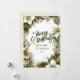 Ge din semesterhälsning elegans med den här grönten och den vita juldesignen. Med vinter-blommigtar, vintergrönt gräs grenar och mjuka naturaccenter fångar det perfekt säsongens fredliga charm. Kombinationen av ömtåliga blomningar och rustiska grejer gör det till ett raffinerat men mysigt val för spridning av festiv ost.