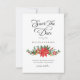 Lägg märke till din stora dag med vår vinterjulgräddande blommigt Elegant bröllop spara datumkortet. Denna utformning har elegant säsong grönery och våtlöv, och är perfekt för helgdag- och vinterbröllop. Finns som tryckta kort och digital nedladdning.