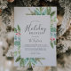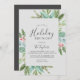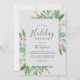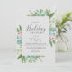 Detta jullagniga helgdag brunch grått-inbjudningskort är perfekt för en enkel helgdag-händelse. Vintern-helgdag har en mjuk grönt med vattenfärg eucalyptus och moderna botaniska produkter med sprit av klassiska röda hylsbär.