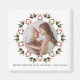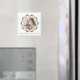 Den här designen har en röd julbild och en grönt fotavtryck med elegant gienery foliage holly, en enkel minimal helgdag, med pinekonerna gräs cones botanical lövs, snyggt trendig festive helgdag löv, en cirkel runt foto bild-mall, ett kreativ unikt förenklat elegans, modern klassisk stil-design, julmagnetkylare, julbild helgdag fotogåva