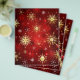 Röd julbakgrund med guld- och vita smyckessnöflingor. Gyllene snöflingor.