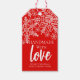 En fantastisk 'hantlad med kärlek' julpresentetikett. Slående och modern röd och vit design med snöflingor. Personifiera framsidan med ditt familj- eller företagsnamn. Det finns utrymme på baksidan att skriva din företagsinformation om det behövs.