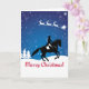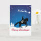 En vacker vinterscen med Tomte som flyger med sina renar i himlen medan en vacker dressyrhäst uppträder ovanför hälsningen "God Jul". Om du gillar denna design, vänligen kolla in min butik Pattys Pet Art för fler equestriska designs.