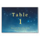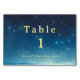 Julkort i bord med stjärnor med blått och guld färg. Underbart bordsnummer party förser er med mat till bord under julen. Förbättra bord med anpassningsbarnas bordsnummer kort. Anpassa texten. Använda mallen för att skapa ditt eget bordsnummer-kort för helgdag och guld.
