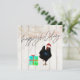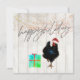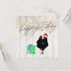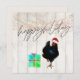 Ljus Helgdag- eller julhälsningskort med en kyckling i en julhatt och färgstarka gåvor. Ändra enkelt informationen för egen del. Roligt och säsong hälsning.