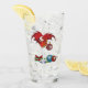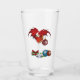 En söt röd drake i ett martinistiskt glas med en grönt oliver. Ornament, grönt oliver och en present överallt.