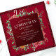 Julinbjudan till Winter Party-Blommigten Luncheon Glitter har en röd poinsettia blommigt ram på en burgundröd glitter-bakgrund med din personlig julfest i mitten. Designad av © Evco Helgdagars www.zazzle.com/store/evcoholidays