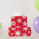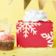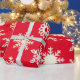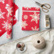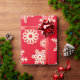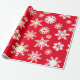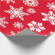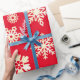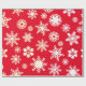 En rad mönstrade snöflingor mot en röd bakgrund är grunden för denna papper för julklapp eller Helgdag.
