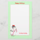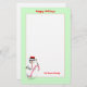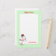 Julstationär i gryt med snögubbe som bär solglasögon och som håller i candy cane. Glad helg ligger överst i ljust rött brev och ett exempel på namn ligger vid grund som man lätt kan ändra på.