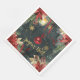 En lyxig och festlig julnapkin-formgivning med en mörk grönt vinterbakgrund i skogen med helgdag, skum guld snöflingor, vattenfärgade poinsettias, gräs-koner, röda bär med varma tända lanternor och en strålande röd boll-ornament på rött band som faller mitt i luft och God jul och som är skriven i guld penseldragare. Feliz Navidad, God jul och Glad helg läggs till i denna napkin. Anpassa och anpassa dem med Verktyg i Redigera med Design.