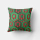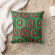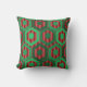 Dekorativ kudde har en geometrisk utformning av hexagoner i fyra skuggor av grönt på rand fält i två röda nyanser.