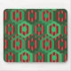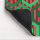 Denna musknapp har en geometrisk utformning av hexagoner i fyra skuggor av grönt på rand fält i två röda nyanser.