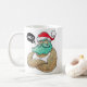 Roligtens juldesign med en hipster Jultomten. Tomten har ett grönt skägg och tatueringar.