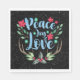 Hjort med texten "Peace Kärlek Joy", röd poinsettia, holly, bär och snöflingor mot svart bakgrund. Bakgrunden till färg kan ändras.
