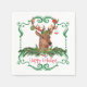 De här pappra blöjorna i roligten har en söt vattenfärgsbild av ett hjort som går upp från en evergreen bough som dekoreras med en klocka och hullbär. Hjort-invånarna är dekorerade med olika briljanta färgader och mönstrade Julgran lökar. Under bilden är ljusröd text som för närvarande heter "Glad helg". Allt är inneslutet i en grönt i stil i ram. Unik!
