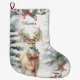 Julens Hjort Art Stocking, Rustic Woodland BeSnygg Watercolor-Hjort i Winter Forest Setting: För in naturens skönhet i ditt hem med vår stora julstrumma med en fantastisk vattenfärgsmålning av en hjort i en snöskog. Hjorten är försedd med en festive holly-krans runt nacke och på dess antenner, skapar den en perfekt helgdag dekoration. Detta lager är tillräckligt stort för att rymma många behandlingar och överraskningar. Håll den i kaminen eller på väggen för att tillföra ett litet träskmagi till din juldekoration.