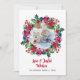 Denna eleganta helgdesign visar ditt favoritfoto omgivet av en akvarellblommig krans av järnek, julstrumpor, julstjärnor och sockertoppar i festlig röd och grön färg. Nedan i modern röd text "Kärlek & Glada Önskningar" med ditt familjenamn och år nedan i plommon typografi. På baksidan finns ett koordinerande mönster av akvarell-julstrumpor och blomsterelement. Lägg bara till ditt eget foto och redigera texten i de medföljande textrutorna.
