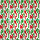 Detta har en upprepad mönster av ovaler i rött och grönt med spridda vita ovaler på en fält av vitt.