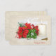 Julstjärna bukett och bröllopsringar med ljus och Bibeln i elegant mask ram för högtidligt bröllop svar.