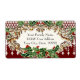 FÄRG PALETTE: Röd, grönt och guld med kräm DESIGN COLLECTION: Dessa etiketter kan användas för att returnera dem till dina julkort eller om du tar bort texten kan du skriva ut ditt eget adress på blanketterna. Bakgrunden mönster är ett handmålat rödaktigt färgtryck med holly löv och bär som är spridda runt vintagens dekorativa etsning som grafiskt har omvandlats till ett tredimensionellt tittar, faux gyllene metall-snurrande band och båge. Klassisk, traditionell julafton-helgdag-dekoration för ditt emballage- och kontorsbehov.