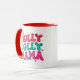 Jul Holly Jolly Mamma Modern Glitter Script Tea Kaffe koppar innehåller texten "Holly Jolly Mamma" i färglöst modernt glitter i rött, grönt och rosa. Perfekt för julklappar och helgdagar. Designad av ©Evco Helgdagars www.zazzle.com/store/evcoholidays