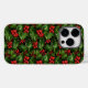 Jul Holly Löv och Red Berries sjölösa Mönster Fodral-Mate iPhone 14 Pro Fodral. En grönt, utan mönster, löv och rödbär på svart bakgrund.