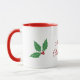 Ett Julafton mugg med krok och röda bär, anpassadet God jul. Om du vill dricka kaffe på kontoret eller en hett choklad hemma till ge, så kommer mugg att slå stämningen.