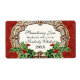 FÄRG PALETTE: Röd, grönt och guld med grädde DESIGN COLLECTION: Dessa etiketter kan användas för att tillsätta en liten elegans och skönhet till handgjord, handgjord köksmat, sylt, konservera gåvor eller märkre på Julklapp eller om du raderar texten som du kan skriva ut ditt eget adress på blankteckningen. Bakgrunden mönster är ett handmålat rödaktigt färgtryck med holly löv och bär som är spridda runt vintagens dekorativa etsning som grafiskt har omvandlats till ett tredimensionellt tittar, faux gyllene metall-snurrande band och båge. Klassisk, traditionell julafton-helgdag-dekoration för ditt emballage- och kontorsbehov.