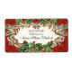 FÄRG PALETTE: Röd, grönt och guld med grädde DESIGN COLLECTION: Dessa etiketter kan användas för att tillsätta en liten elegans och skönhet till handgjorda, handgjorda matpresenter eller märkre på Julklapp eller om du raderar texten kan du skriva ut ditt eget adress på blankoetiketterna. Bakgrunden mönster är ett handmålat rödaktigt färgtryck med holly löv och bär som är spridda runt vintagens dekorativa etsning som grafiskt har omvandlats till ett tredimensionellt tittar, faux gyllene metall-snurrande band och båge. Klassisk, traditionell julafton-helgdag-dekoration för ditt emballage- och kontorsbehov.