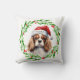 Helgdag jul dekorativ kudde med en vattenfärg Cavalier Kung Charles Spanska och vattenfärgsdesign för julkransarna. Lägg till hundar namn till kaffet kopp och det är perfekt-presentidén till den valp hund älskare du känner, eller dig själv!