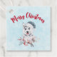 Favorittaggar med en vit och söt vattenfärgsmålning av en himmelsk hund med blå julhatt.