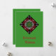 God jul i Swahili visas på baksidan av det här grönt julafton-kortet baserat på en afrikansk utskriftsinspirerad design. Krismasi njema på framsidan, elak God jul i Swahili, ett språk av Öster Afrika. Röd, Grönt och vit design inspirerad av gammal afrikansk konst.