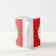 Kute grönt julklapp som håller en presentlåda mitt i en gräs-andedräkt och guldstjärnor på den röda bakgrunden Mugg. Njut av årets mest underbara och magiska tid!