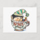 Jul i Cute Tecknad Elf Sleeping in a Tea Kopp Helg Vykort