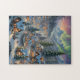 Det här pusslet har en by som är täckt av snö och som har lätt upplysta hus i bergen, omgiven av högt fir träd, polar ljus som lyser i himmel. Underbart presentidé!