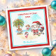 Jul i juli eller Aussie-julservetter med söt Jultomten och hans kompisar på stranden. Anpassa texten eller lämna den tom. - Kate Eden Art