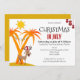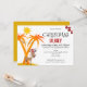 Färglös sammanfogning av säsonger för denna CHRISTMAS IN JULY-inbjudan. Den pulserande utformningen visar sommarens gult sol, de hängande röda julbalarna, handflatan träd med renar och säsong med snö-tak i JULI och julmanus. Du kan anpassa din inbjudan genom att lägga till namn, datum och plats på framsidan. På baksidan är texten också ANPASSADE så att du kan lägga till ett personligt meddelande till dina gäster.