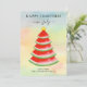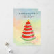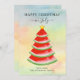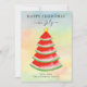 Planerar ni en jul i juli i firande i år? Denna roligt jul i juli-kort dekoreras med en röd vattenmelon Julgran på en färgstark bakgrund. Ursprunglig vattenfärg © Michele Davies.