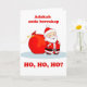 Julhälsningskort skrivet i Malay. Julfrågan: Talar du Ho, Ho? Adakah och bercakap Ho, Ho, Ho? Selamat Hari Natal! God jul skrivet i Malay inuti kortet. Anpassa det inre meddelandet efter behov. Illustration av en söt Jultomten med en stor röd presentpåse fullt gåvor. Art, bild och versell copyright Shoaff Ballanger Studios.