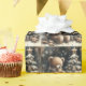 Njut av den här snygga pappra omslutningen för dina julfester. Den här jultomten "Cute Nalle jul" sitter nära en liten, dekorerad, snö täckt Julgran med guld stjärna och baubles. Han bär en plaid scarf, och i mörken avstånd svart att du ser snöflingor falla. Det här är ett enkelt stort mönster i sidled.