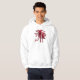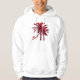 Skrivev den hooded tröjan ut för vit med en avbilda av Christmassy röda blom- batikpalmträd med "Bali" bredvid dem i rött skrivar. Se den hela samlingen för Bali reträttdräkt i den SPECIELLA party favors för HANDLAG | dela upp.