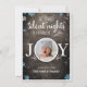 Vi handlade tysta nätter för en massa glädje. Fotografiet är anpassbart tillsammans med familjen namn. Konstruktionen är en rustik trä med blått och vitt snöflingor och illustrerad gräs-kvistar. Grattisar på ditt lilla glädjeslag.