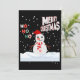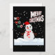 Denna inbjudan visar orden "God Jul Ho Ho Ho" i ett unikt tryckfont med flerfärgade bokstäver och Jul Snömannen bär rött och vitt med snö som faller i bakgrunden i detta jul-tema och stil. Tryckt på ett klassiskt, runt papper med 17,5 pts tjocklek med en obestruken mat finish med en äggskalstruktur tillverkad och tryckt i USA med "God Jul" tryckt på baksidan.