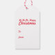 Märkre för julomslutning i varm röd och vit. Det går inte att tittar förrän den 25 december, roligt fet jultomts/pappa jul berömd skäggs grafisk jultryckt märkre med swing gift. Anpassa med ditt eget hälsning och namn på andra sidan. Grafik och design av Sarah Trett.