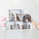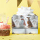 A snögubbe och Irish Setter hund båda med halsduk ett ögonblick av sällskap i en snöskog