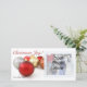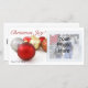 Vackra vita, röda och guld christmas bauble-temakort. Elegant och klassisk röd och vit design med skripttext och accenter från guld och silver. Ett foto med ett vågrät.