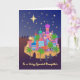 Ett glatt julkort för en mycket Speciell dotter, med ett stjärnande himlar, de tre vise manar på deras kameler i avstånd, och Joseph, Mary och en åsna skapar sig in i den ljusa färgaden lilla staden Betlehem. Slettringen, julglädjen och stjärnorna är i guld-effektfärg (inte i guld). Judy Adamson har en blandad mediedesign.
